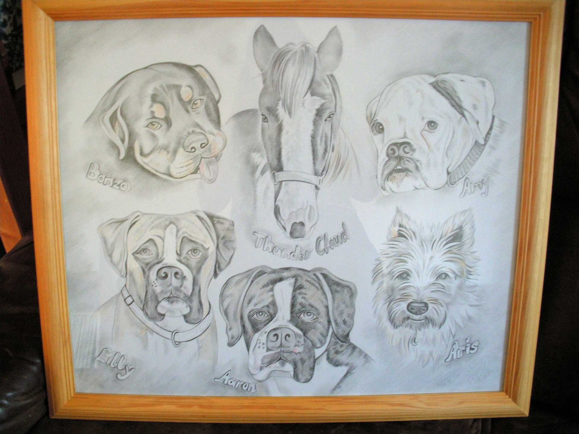 Hier können Sie sich eine Auswahl meiner Arbeiten ansehen. Mit einem Klick auf das Bild öffnet sich ein neues Browserfenster mit vergrößerter Darstellung. Habe ich Ihr Interesse an einer künstlerischen Porträtierung Ihres Tieres geweckt, dann schreiben Sie mir oder rufen Sie mich an.